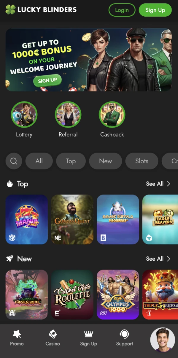 Η χρήση του LuckyBlinders για κινητά μέσω browser είναι γρήγορη και δεν απαιτεί επιπλέον αποθηκευτικό χώρο για πακέτο εφαρμογής. Το mobile site μας λειτουργεί σε smartphones και tablets και προσαρμόζεται σε μικρότερες οθόνες για παιχνίδι, χρήση ταμείου και ρυθμίσεις λογαριασμού. Είναι ο πιο εύκολος τρόπος να έχετε πρόσβαση στο LuckyBlindersCasino, ενώ η πλατφόρμα ενημερώνεται αυτόματα.